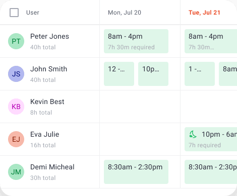 See who is active, late or not present to monitor schedule adherence and calculate payroll as you go - ensure staff get fully recognized for work they do.