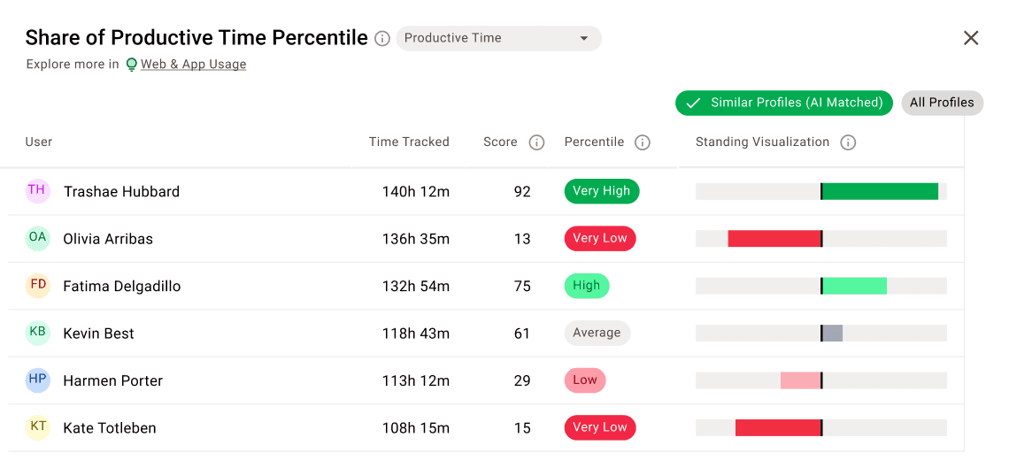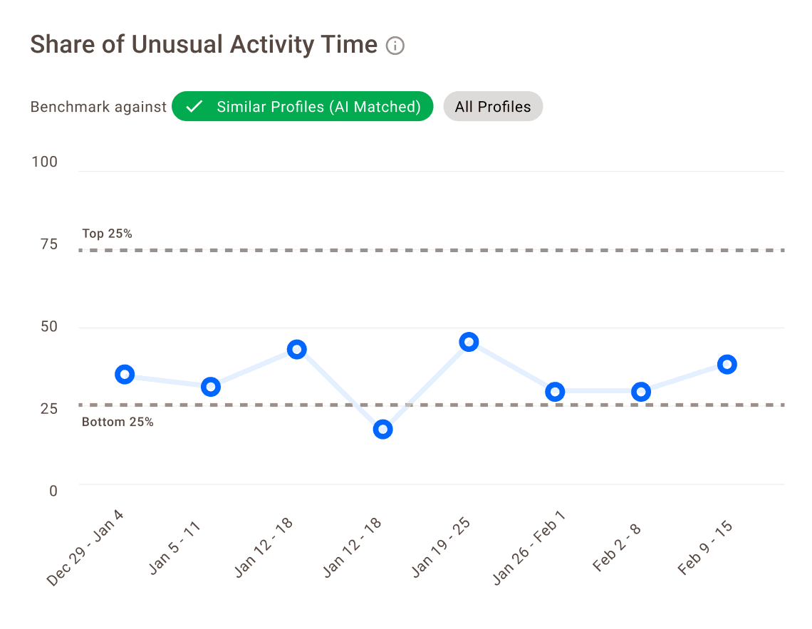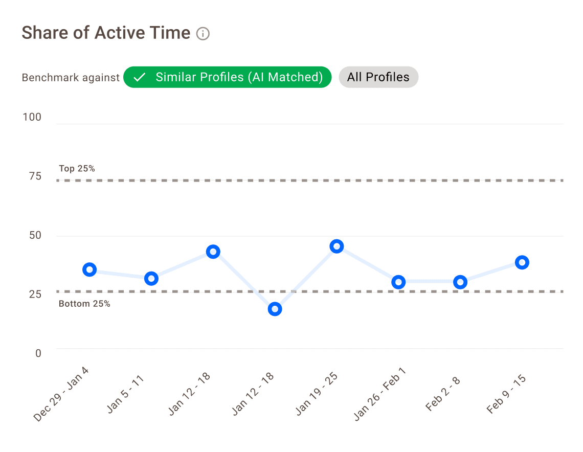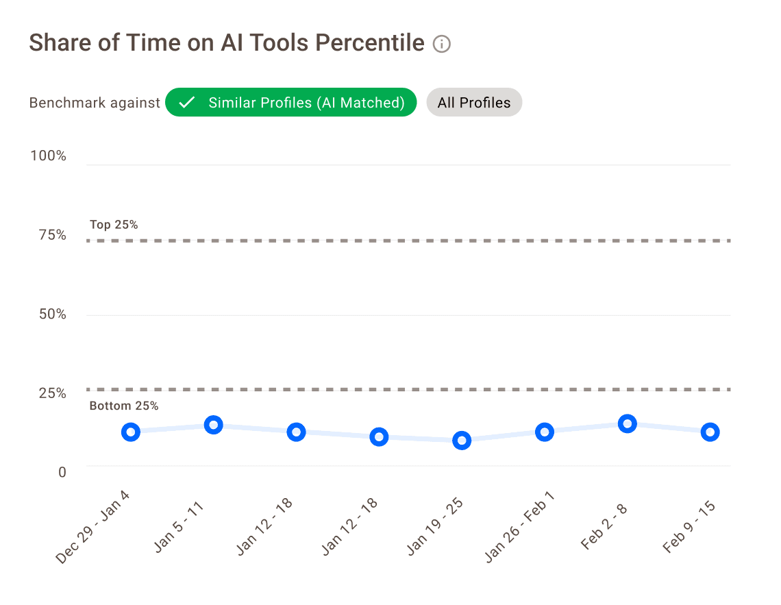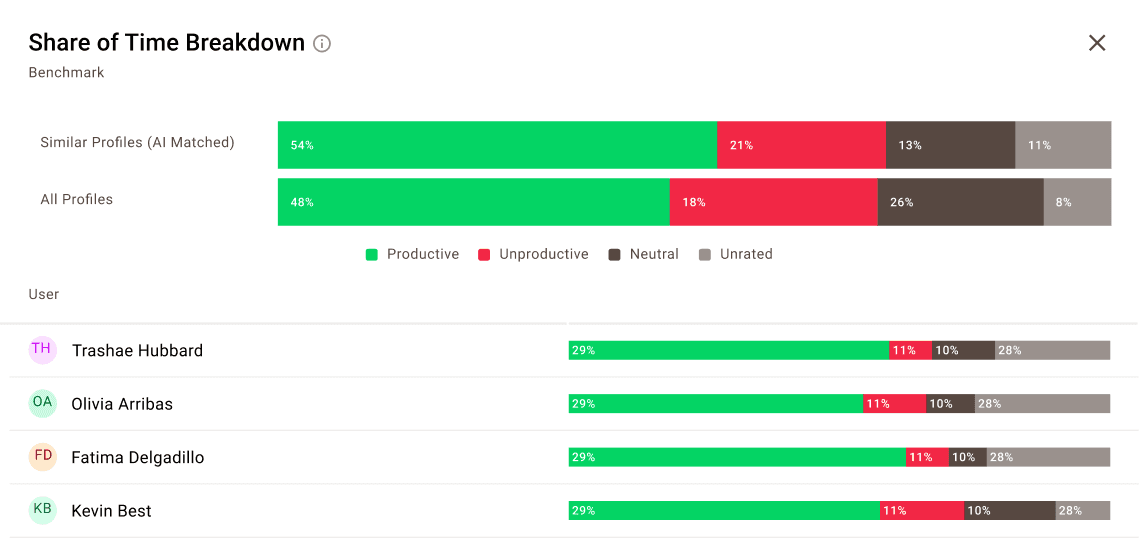 Benchmarks AI takes your existing productivity data and compares it to matched peer groups based on real work patterns.