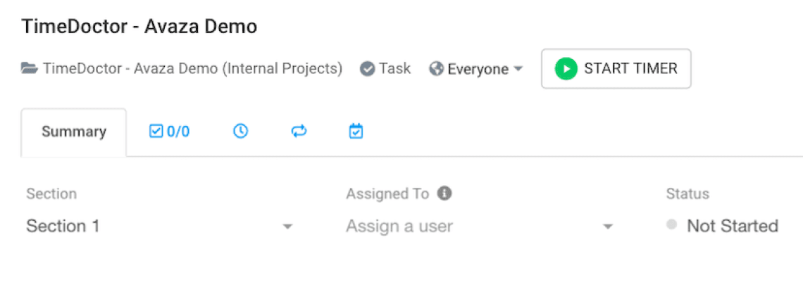 With the Time Doctor Chrome extension installed, simply click the start and stop button for each task to track time effortlessly in Avaza. Time Doctor does all the hard work by summarizing time use and tasks in the Time Doctor dashboard, for easy viewing.