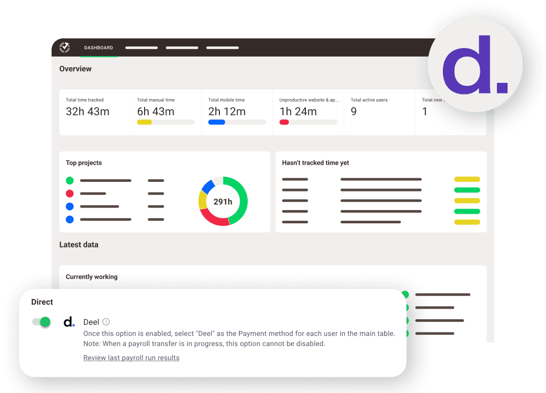 Discover better Deel payroll processing with automatic time tracking and streamlined payments.