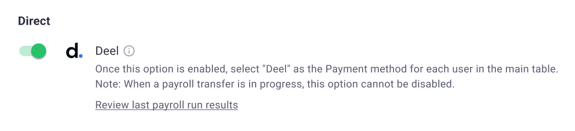 Enable Deel Integration in Payment Methods under Payroll on your Time Doctor app