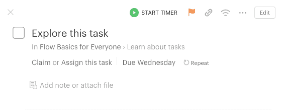 Once you install the Chrome extension and refresh the page, you’ll see a START TIMER button appear at the top of your existing tasks. When you click on it, the button will automatically change to STOP TIMER. The name of the Flow task you’re tracking time for will be automatically added to the description, but you can add a further description if needed. Once you are finished with the task, simply click on STOP TIMER and you’ll be all set.