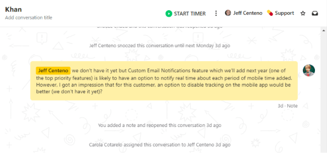 Time Doctor adds time tracking to your Intercom conversations.